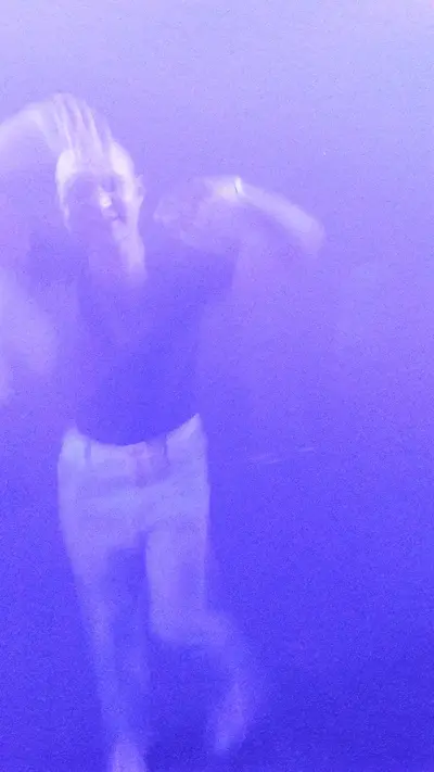 Wir treten durch einen Vorhang. Ein blonder Typ mit geschorenen Haaren und grauem V-Neck-Pulli dreht sich von der Bar weg. „Hey, my brother“, sagt Geletron und drückt mir zwei Pappbecher in die Hand. „Cheers“ sagt er, wir prosten uns zu und kippen erst Vodka hinunter, danach Ananas-Saft. Über der Bar hängt eine Leinwand. I’M YOUR FUCKING FUTURE.