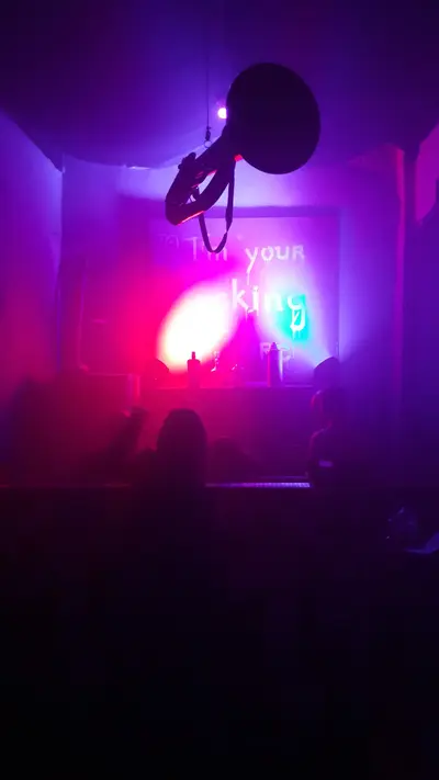 Geletron fragt mich, ob ich bis zu seinem Set um 3 Uhr morgens bleiben würde? Ich habe ein wenig Schiss, aber ich nicke.