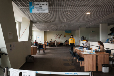 André ist seit zwanzig Jahren Fan, exzessiv, wie er sagt. Fussball das sei für ihn in normalen Zeiten hochemotional, jetzt fühle er dabei wenig. Die Spiele schaut er nicht, er checkt nur schnell die Ergebnisse auf seinem Handy. Sein Tag beginnt morgens um sechs, oft arbeite er bis 23 Uhr. Geflüchtete, die in Lwiw ankommen, können sich in der Arena Lwiw registrieren, Kleidung bekommen, einen Schlafplatz. Die meisten leben hier knapp einen Monat. Gleichzeitig wird hier gespielt.