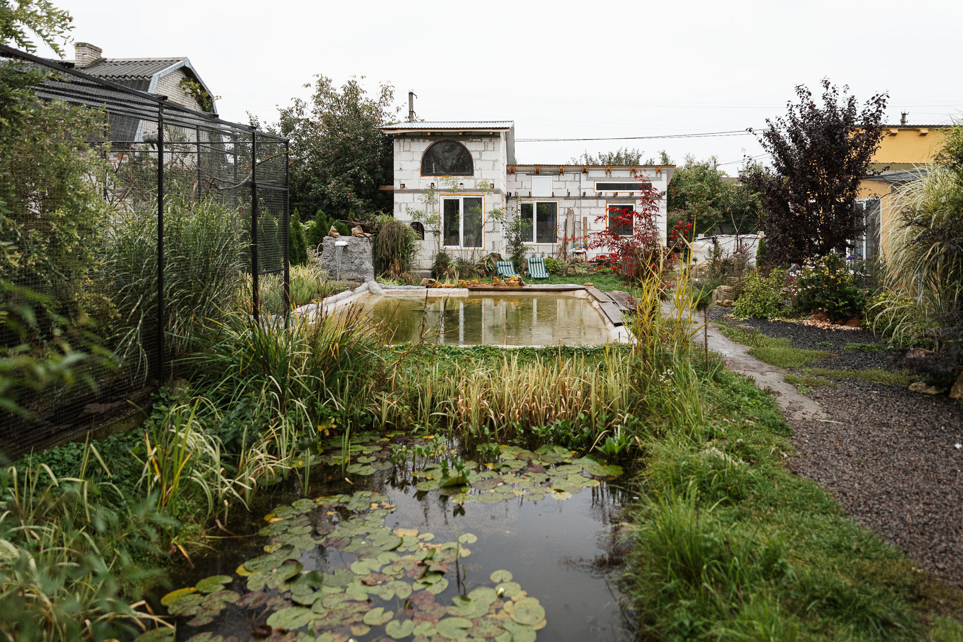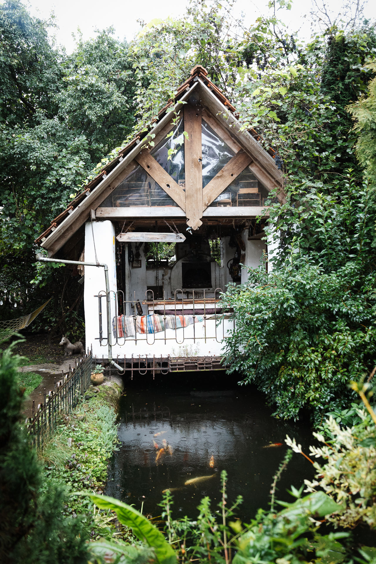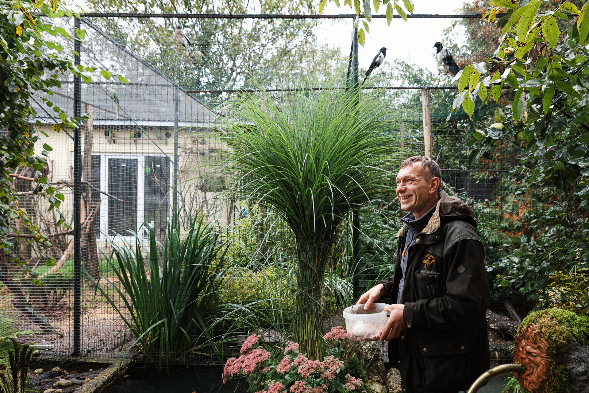 Viktor Shewinskyis Garten am Rande von Lwiw sieht aus wie das Gelände eines Avantgarde-Festivals: hier eine Hängematte mit einem Mobilé aus Austernschalen darüber, dort ein Schaukasten mit Vogelfedern, und da drüben eine selbst gebaute Hütte mit einem großen, in den Fußboden eingelassenen Aquarium. Das Areal ist nicht groß, doch einmal betreten wirkt es endlos. In jeder freien Ecke befinden sich kleine oder größere Volieren.